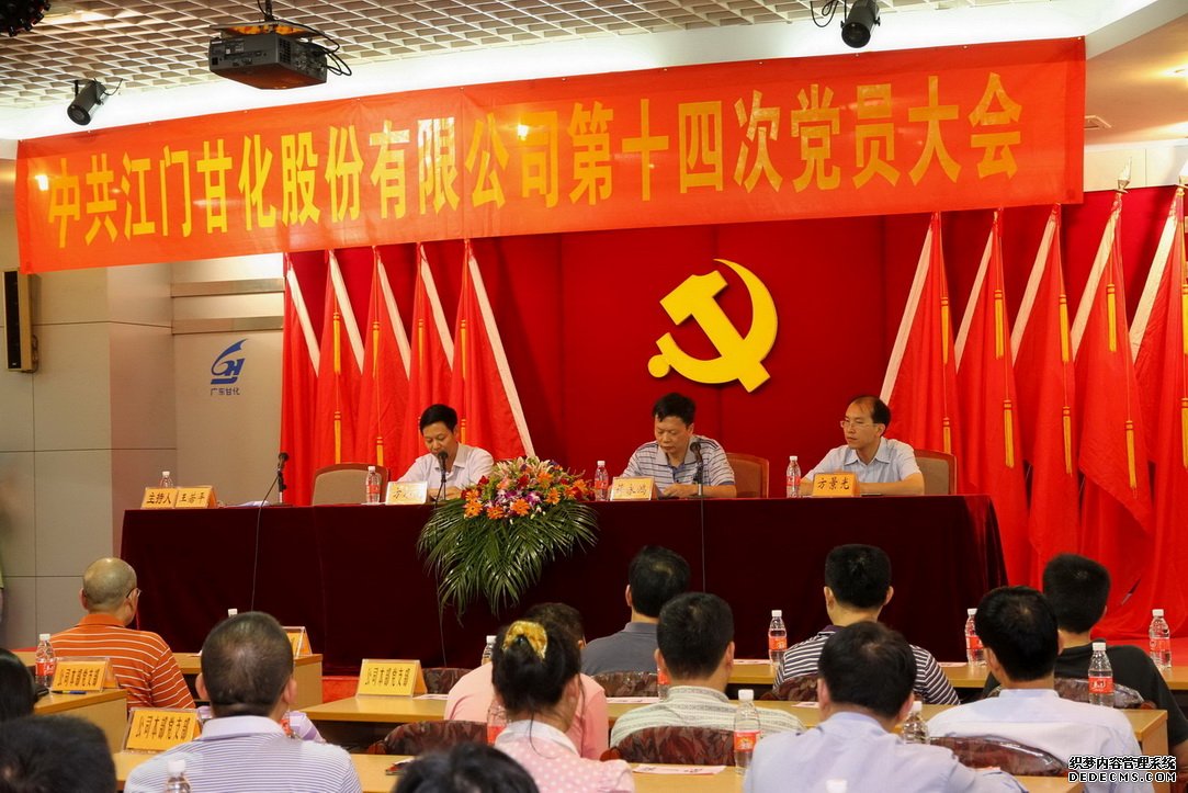 中國共產黨江門甘蔗化工廠(集團)股份有限公司第十四次黨員大會于2012年9月25日下午在甘化大廈十七樓會議大廳舉行,歷時半天。大會議程為選舉產生中共江門甘化股份公司第十四屆委員會。大會應到會黨員數95名,實到會人數95名(有19名離崗退養黨員已辦理委托投票,視為到會人數)。